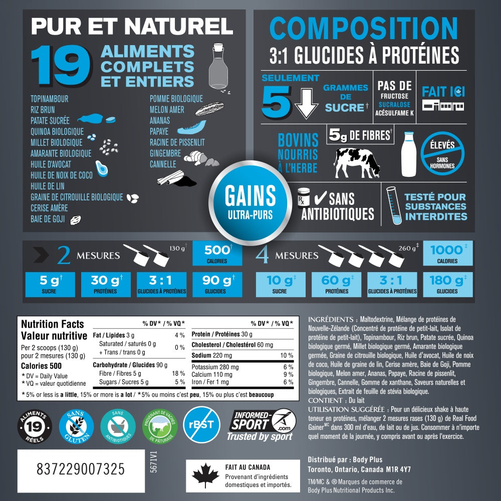 PROGRESSIVE - SPORT Real Gainer - 2.27 Grams - NPN: 00000000 -- AS A HARD GAINER OR HIGH-INTENSITY ATHLETE, YOU NEED A HIGH DOSE OF CALORIES TO RECOVER, GROW, AND/OR MAINTAIN YOUR SIZE AND STRENGTH.Why? The body is quick to break down and waste away your hard-earned muscle when its functioning at a deficit. The best plan of action? A Gainer. BUT Not all gainers are created equally. Sure - they all load you up on calories, but quick and dirty calories are usually the norm. While junk calories may pack on pounds, they arent so great when it comes to your health and getting quality gains. Think of it this way you could get big eating just donuts. But, itll compromise your health and performance, leaving you weak, tired, and unmotivated. Until now, all gainers have followed the same philosophy: quick & dirty calories to add pounds on the scale with no added health benefits.Progressive Sport Real Food Gainer is the right way to gain mass and feed your hungry body, without compromising nutrition. It features authentic New Zealand whey proteins, complex carbs, whole grains, fruit concentrates, plant oils and more!30g of CERTIFIED New Zealand Protein to build and maintain your muscle. New Zealand protein comes from the cleanest source in the world with no antibiotics, growth regulating steroids, or milk inducing hormones (including Rbgh)90g of clean carbs to restore glycogen stores post-workout and keep your body fully fueled19 REAL food ingredients, including sweet potato, quinoa, avocado and tart cherry to feed and fuel your body with good, clean nutritionOnly 5g of sugar so you dont get a sugar spike that leaves you feeling weakNo artificial flavours, colours or sweeteners