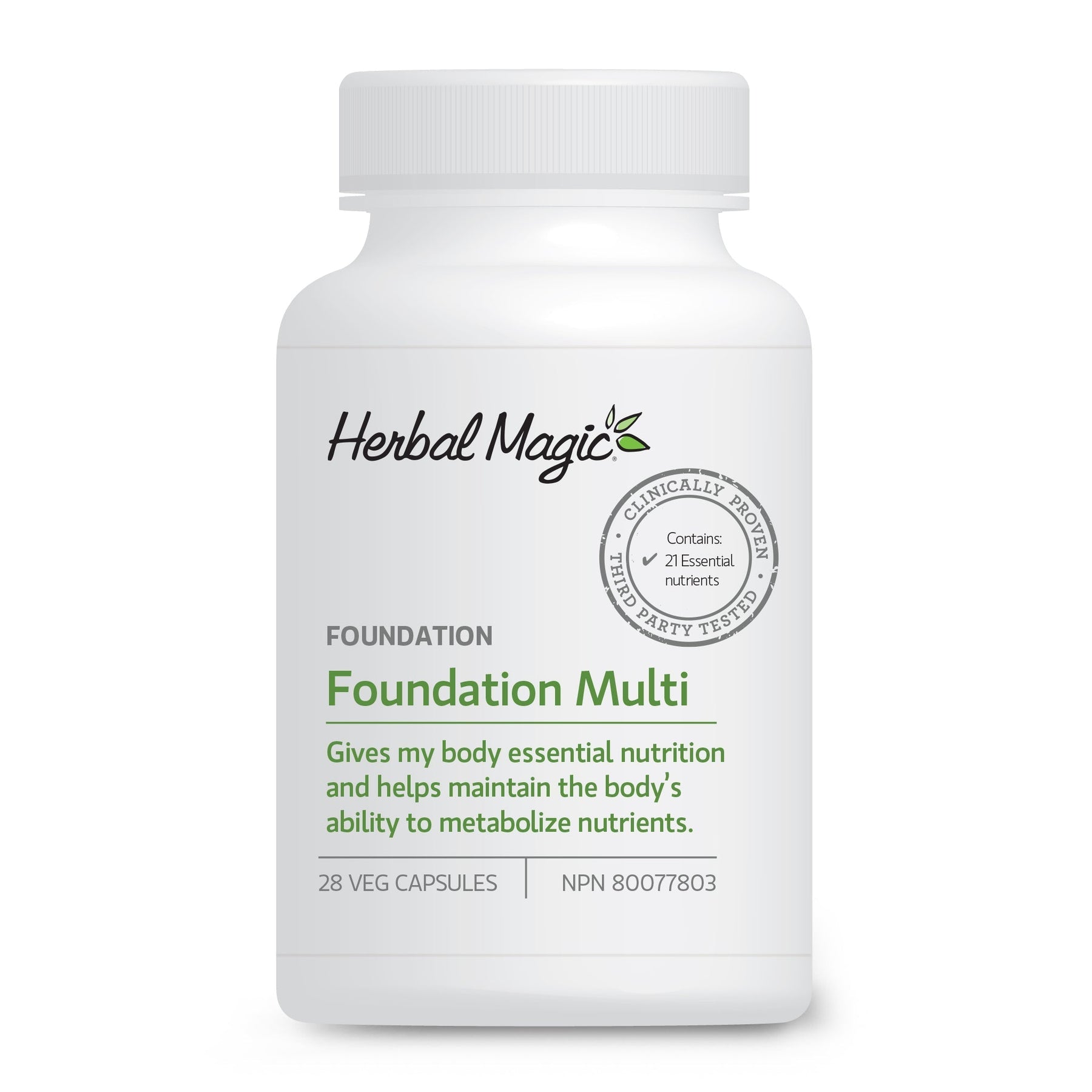 Herbal Magic’s Foundation Multi is a multi-vitamin/mineral formula that contains a blend of vitamins and minerals designed to help meet the nutritional needs of today. Vitamins by definition are dietary substances required for good health and normal development, by regulating metabolism and assisting in all biochemical processes in the body. Their functions can be quite complex wherein any particular vitamin may have various metabolic and chemical roles. Minerals, like vitamins, act as co-enzymes enabling the body to perform its functions including energy production, growth and healing.